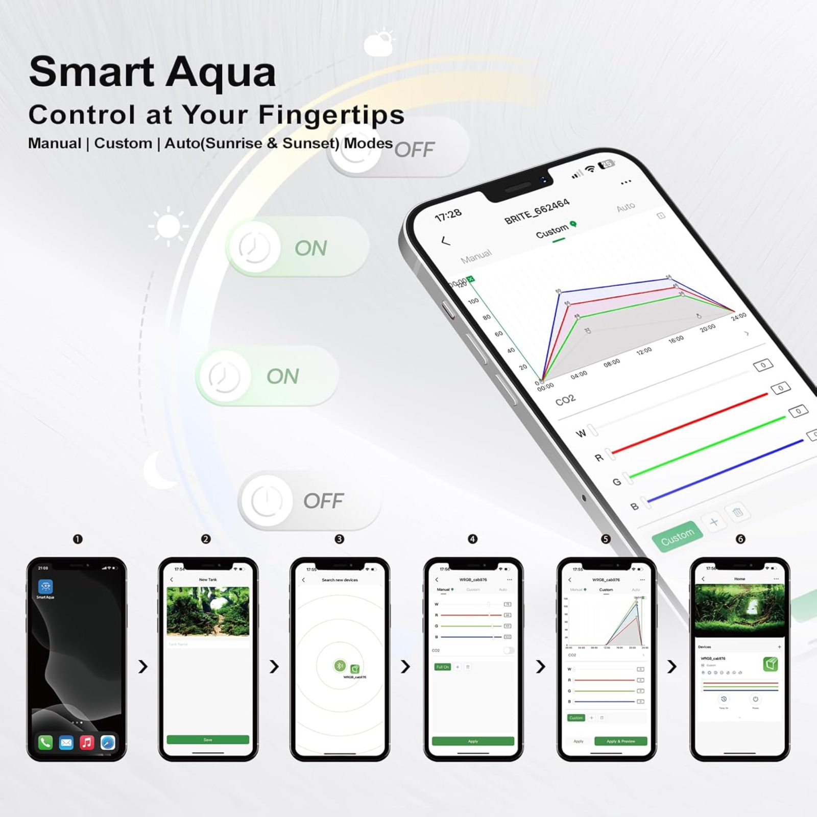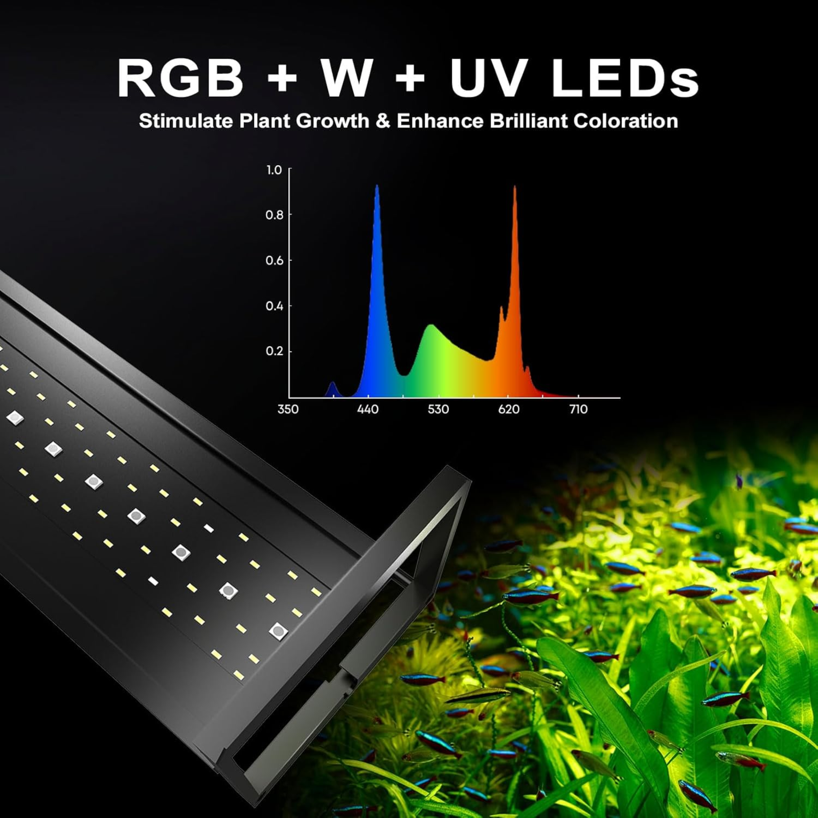 Ideal for Medium Tanks:Fits 45–60cm (17.7–23.6in) tanks; 24W power, 0–1350lm brightness, 6500–12000K